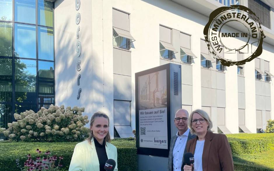 Die Firma Borgers hat ihren Sitz in Stadtlohn gegenüber der Mühlenbrücke und ist in ganz Deutschland für die gute handwerkliche Umsetzung, aber vor allem auch für die nachhaltige und verlässliche Planung von industriellen Bauprojekten bekannt. Dabei setzt die Firma auf knapp 112 Jahre Erfahrung in der 4. Generation, sowie auf gute Zusammenarbeit mit lokalen Partnern. Dass ein Bauprojekt schon weit vor dem ersten Spatenstich beginnt und welche Abläufe bei Borgers passieren, bis der Schlüssel an den Kunden übergeben wird, zeigen uns Anke Borgers und Dr. Herbert Daldrup im Rundgang. Gut 50 Bauprojekte schließt Borgers in Stadtlohn pro Jahr ab. Wieso dabei jeder im Team eine große Rolle spielt und welche besonderen Werte dem Familienunternehmen wichtig sind, hört Ihr hier.