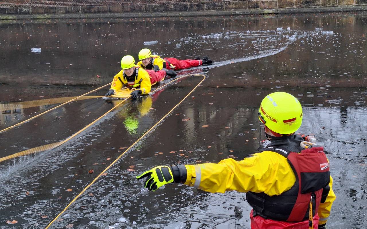 - Leisten Sie Hilfe nur vom sicheren Ufer aus, z. B. mit Stöcken, Schals oder Leinen.