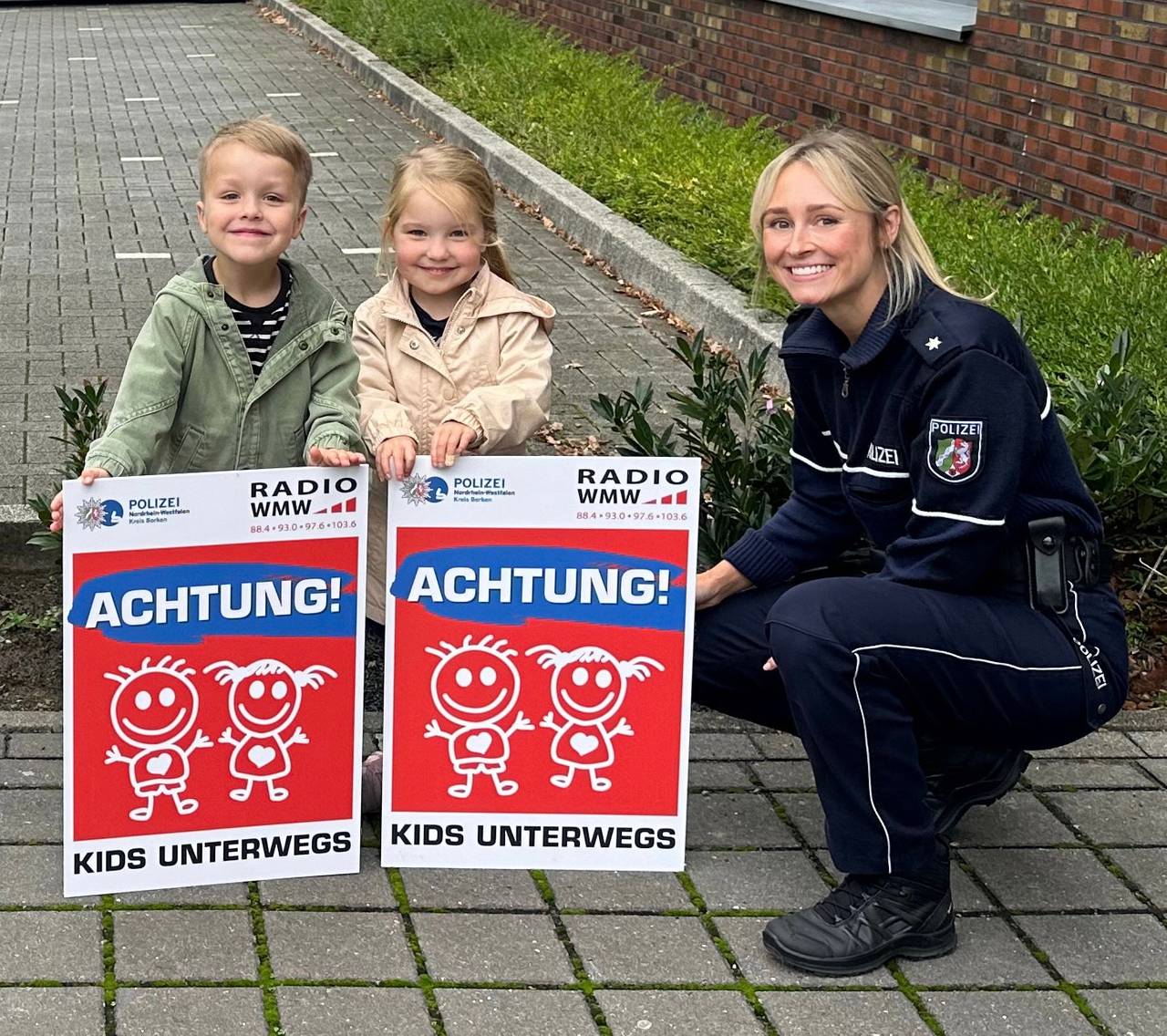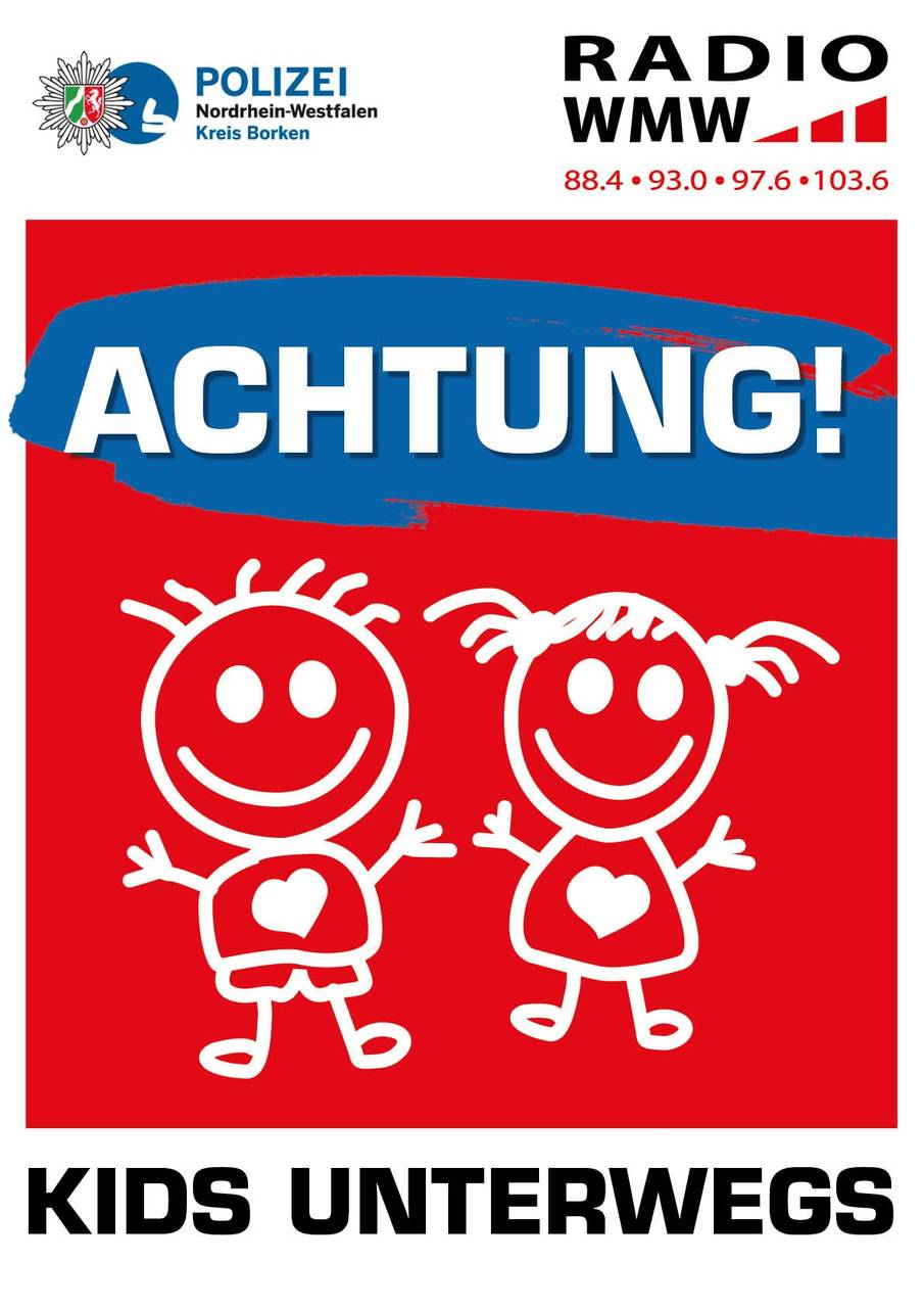 Unsere Kinder sind jeden Tag im Straßenverkehr unterwegs - auf dem Weg zur Schule, zum Sport oder zu Freunden. Damit sie sicher ankommen brauchen sie unsere volle Aufmerksamkeit. Die wecken wir mit den "Achtung Kids unterwegs"- Schildern. In Zusammenarbeit mit der Kreispolizei Borken gab es für euch kostenlose "Achtung Kids unterwegs"- Schilder.
