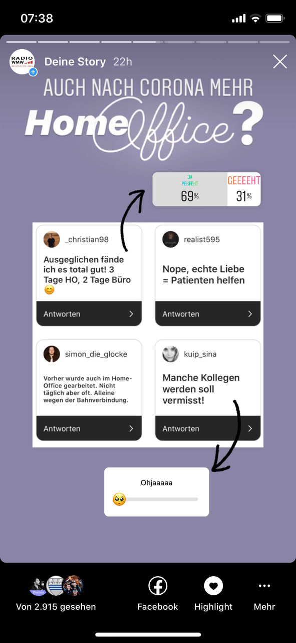 "Ja tatsächlich am meisten über Whatsapp und vornehmlich über irgendwelche Challenges die wir uns irgendwie einfallen lassen"