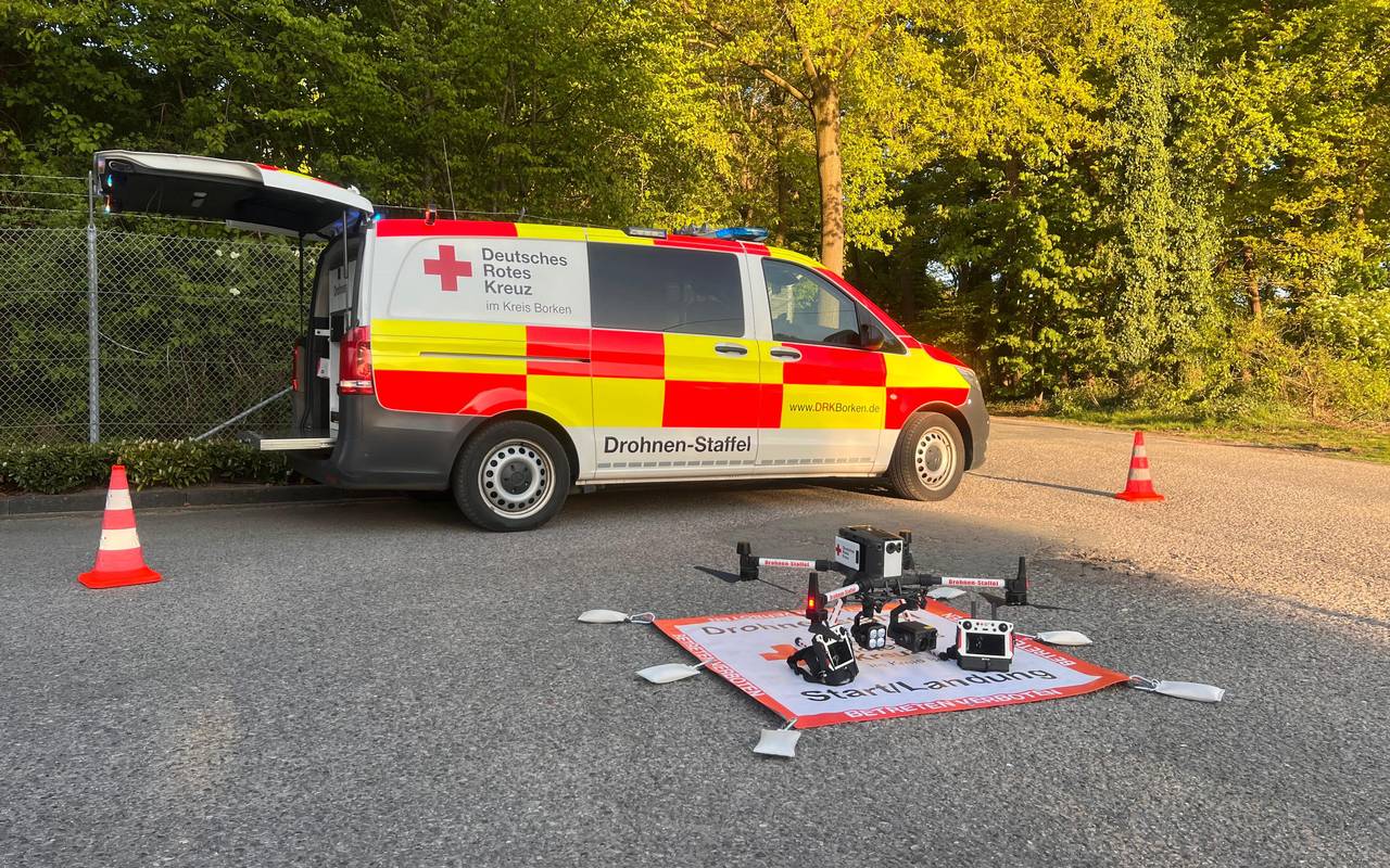 Die Aufnahmen werden von der Drohnenstaffel des DRK-Kreisverbandes gemacht. Die Einsatzleitung kann sich markante und einsatzrelevante Details vormerken und im Einsatzfall können die Sanitäter wertvolle Zeit sparen, sagt der DRK Stadtverband Bocholt.
