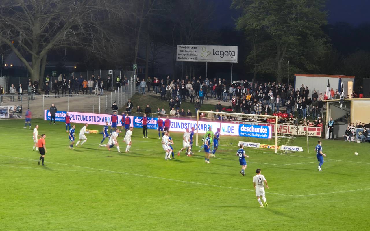 Vor 2.656 Zuschauern unterlag der 1. FC Bocholt den Sportfreunden Lotte mit 3:4 (1:2). Unter dem neuen Flutlicht sahen die Fans ein phasenweise wildes Spiel.