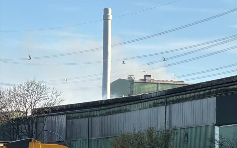 Heute brach im Borkener Gewerbegebiet-Ost ein Feuer in der Schredder-Anlage des Holzkraftwerks aus. Die Feuerwehr ist seit Stunden im Einsatz.