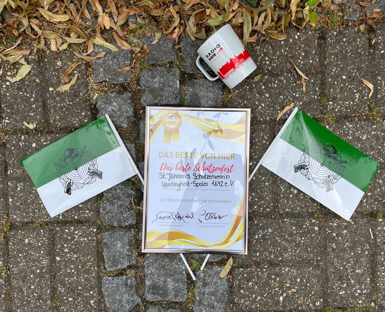 Die Stimmen sind gezählt, das Ergebnis ist eindeutig. Der St. Johannis Schützenverein Vardingholt-Spoler veranstaltet das beste Schützenfest im Westmünsterland! Dabei zeigt sich auch die Schützenkönigin Svenja hat nicht mit einem so starken Ergebnis gerechnet. Besonders gegen das zweitplatzierte Fest aus Krechting wollten sich die Spoler-Schützen unbedingt durchsetzten. Dafür wurde auch auf Facebook fleißig Werbung gemacht, sagt Svenja. Sogar aus der Schweiz oder Bayern konnte sich der Rheder Verein wichtige Stimmen von Verwandten und Freunden sichern und zum besten Schützenfest des Westmünsterlandes werden.