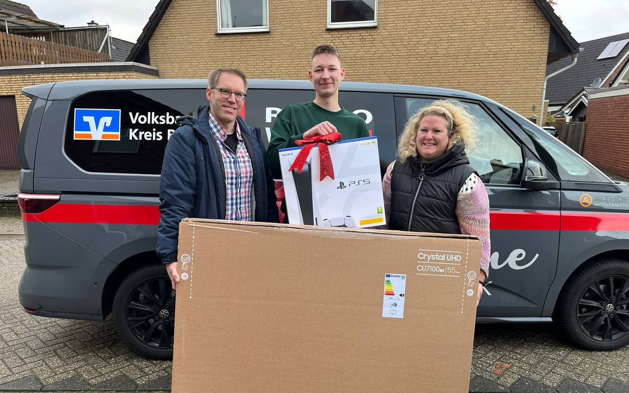 Das geheime Geschenk Nummer 2 ist eine Playstation - behalten darf es Jannik aus Rhede.