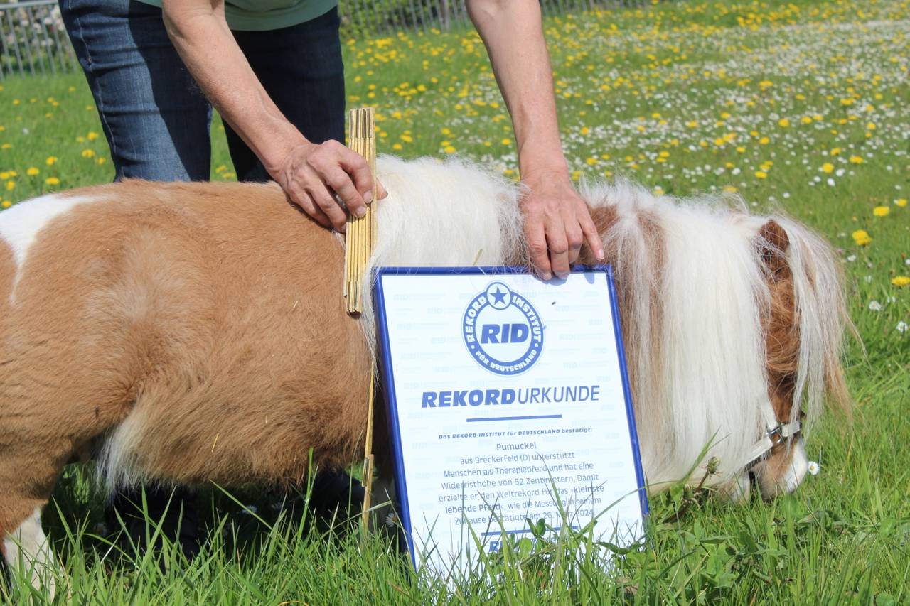 Mit gerade mal 52 Zentimetern ist Pumuckl das kleinste Pony der Welt. Er wohnt in Breckerfeld NRW bei Besitzerin Carola Weidemann und ist ein echter Promi!