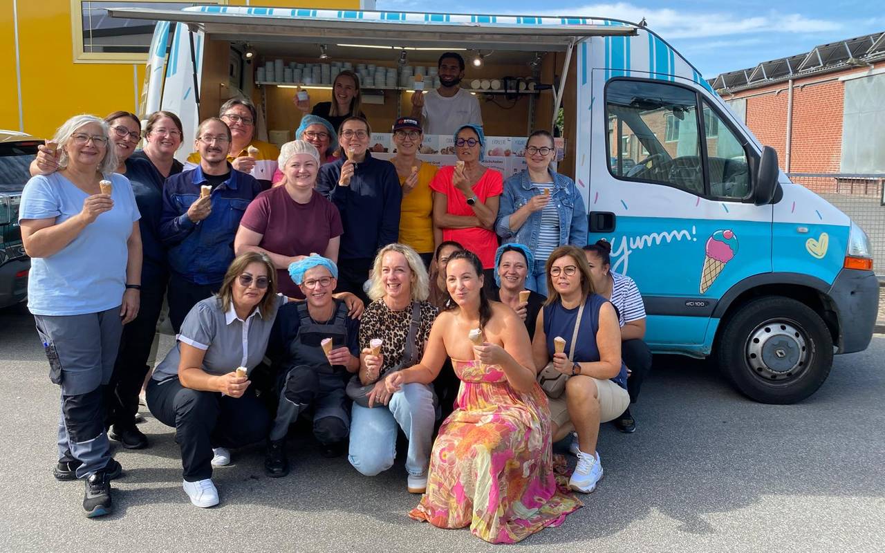 Unsere Morningshow-Moderatorin Sina Kuipers war persönlich vor Ort und besuchte zwei Stationen: die Firma Demes Palettenlogistik in Stadtlohn und das St. Antoniushaus in Schöppingen. Mit tatkräftiger Unterstützung des Teams vom Eiskönig Eiswagen verteilte sie Kugel um Kugel - von Klassikern wie Schokolade und Vanille bis hin zu ausgefallenen Sorten war für jeden Geschmack etwas dabei. Die Resonanz war überwältigend: Alle genossen die süße Abkühlung und das unverwechselbare Summerfeeling, das die RADIO WMW Eiszeit mit sich brachte. Weitere Eindrücke hier!