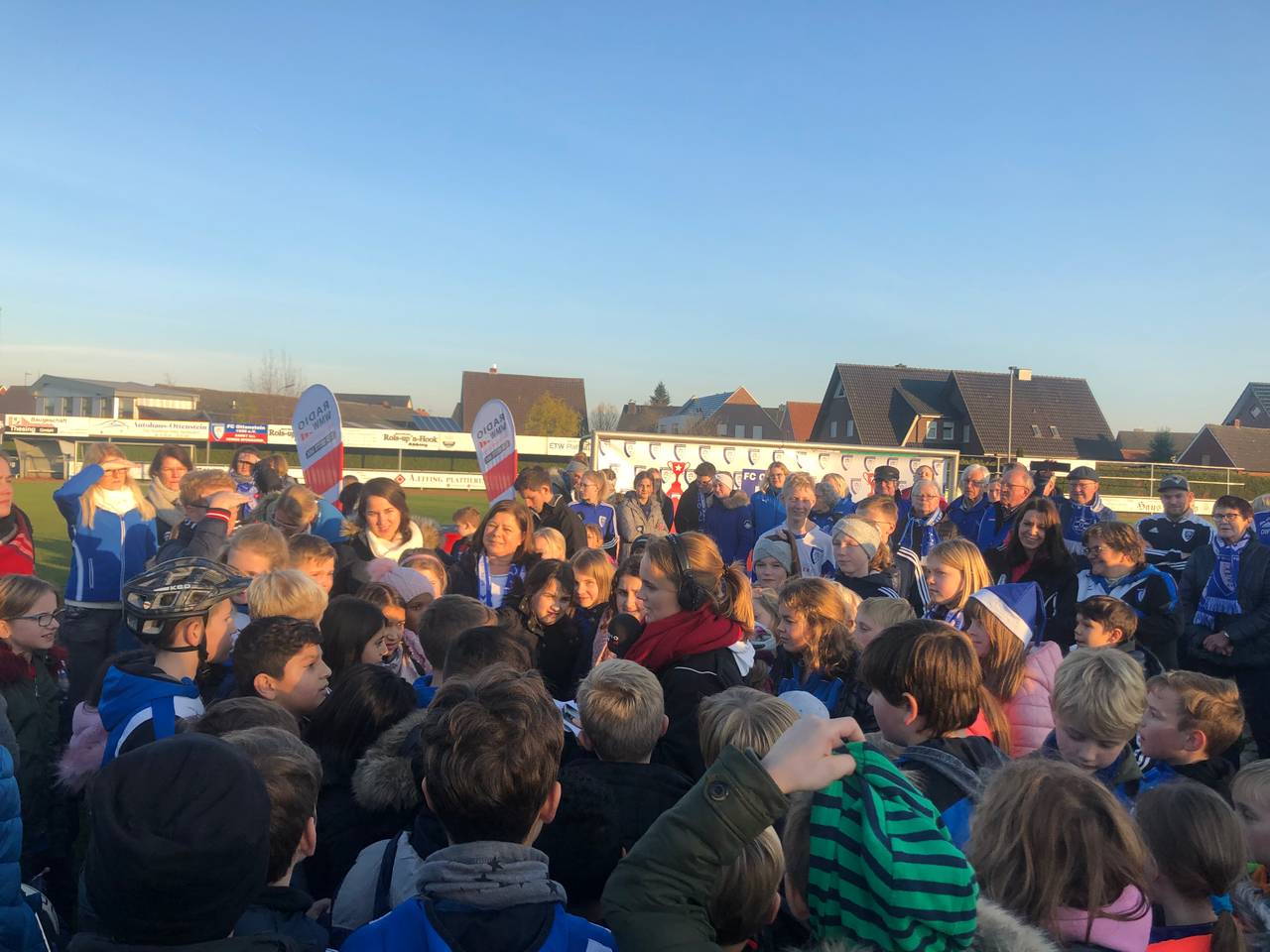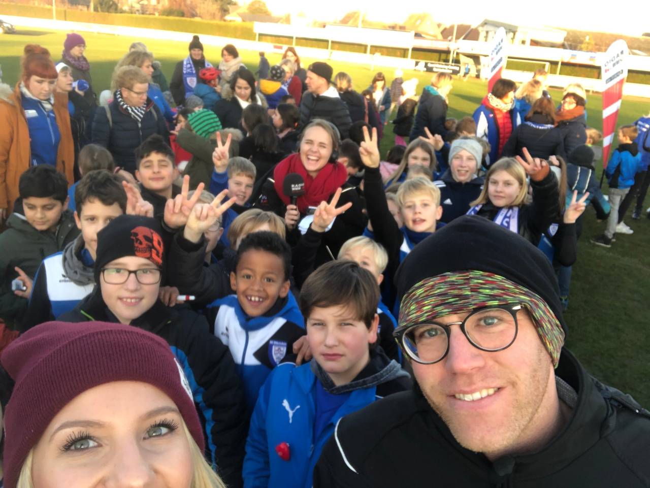 Unsere Morningshowmoderatoren Daniel Krawinkel und Silvia Ochlast haben gewettet, dass der FC Ottenstein es NICHT schafft, um 15 Uhr eine Menschenkette, in der alle die Vereinsfarben tragen, vom einen Tor zum anderen aufzustellen.