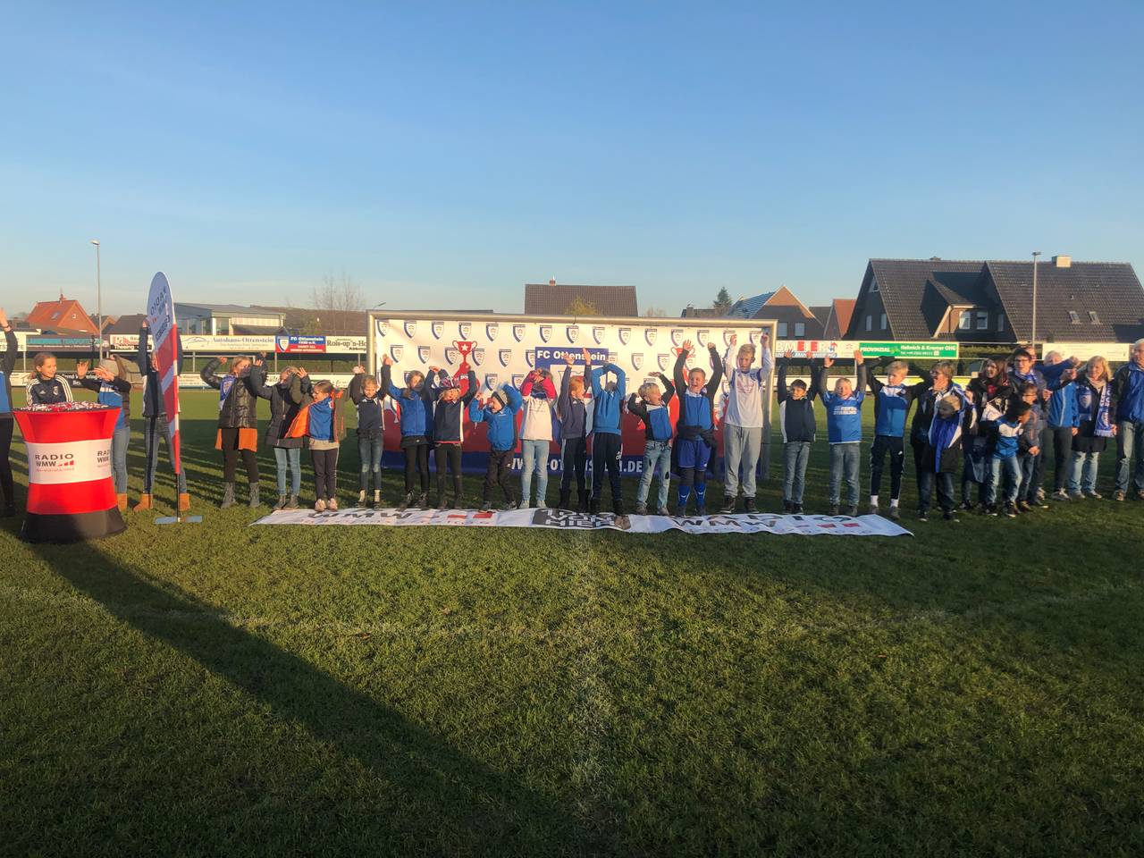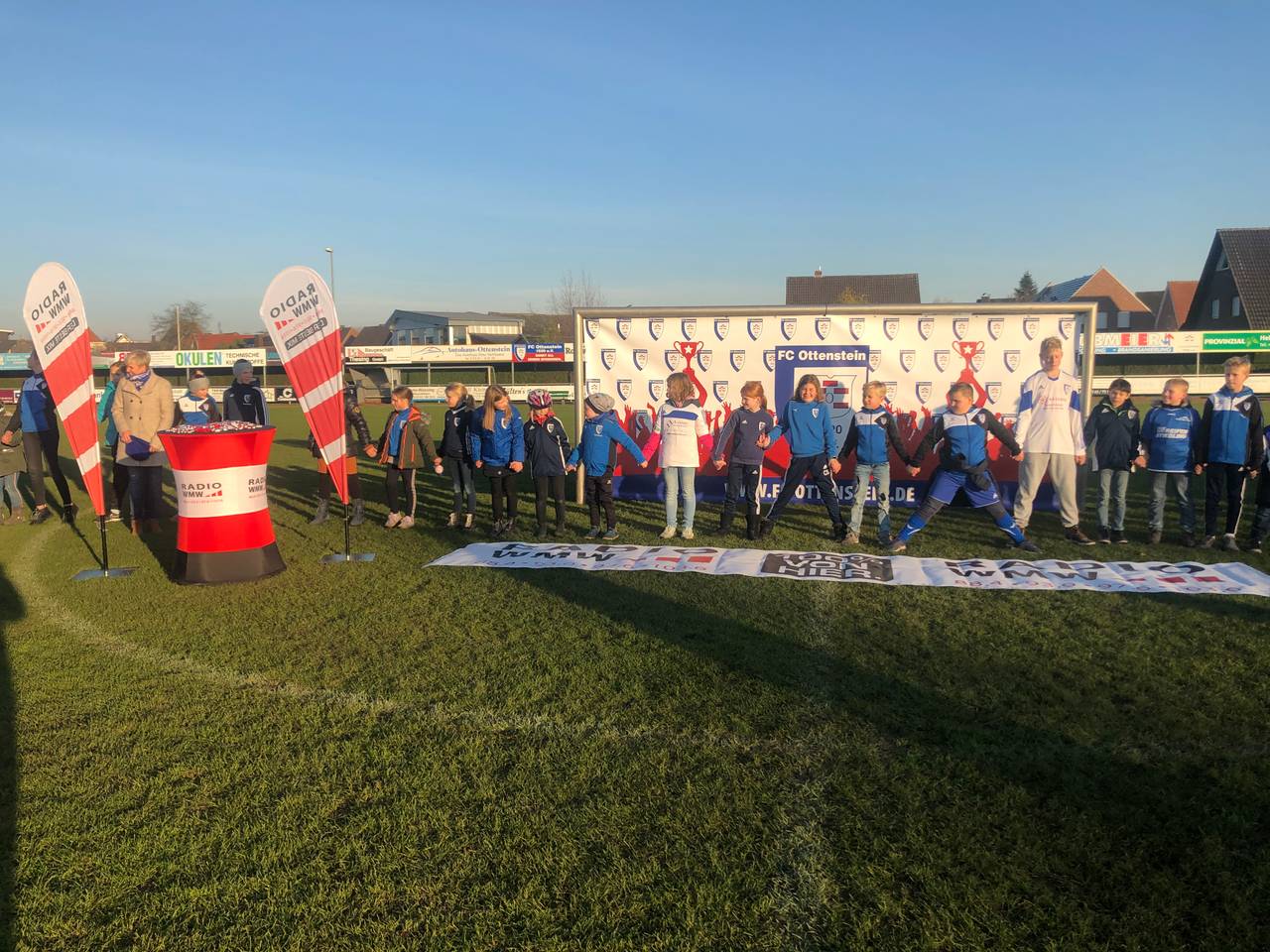 Der FC Ottenstein hat die Wette gewonnen. Mit rund 400 Menschen in Vereinsfarben haben sie eine Menschenkette von Tor zu Tor aufgestellt. Damit konnte der Verein seinen Gewinn auf 1000 Euro verdoppeln.