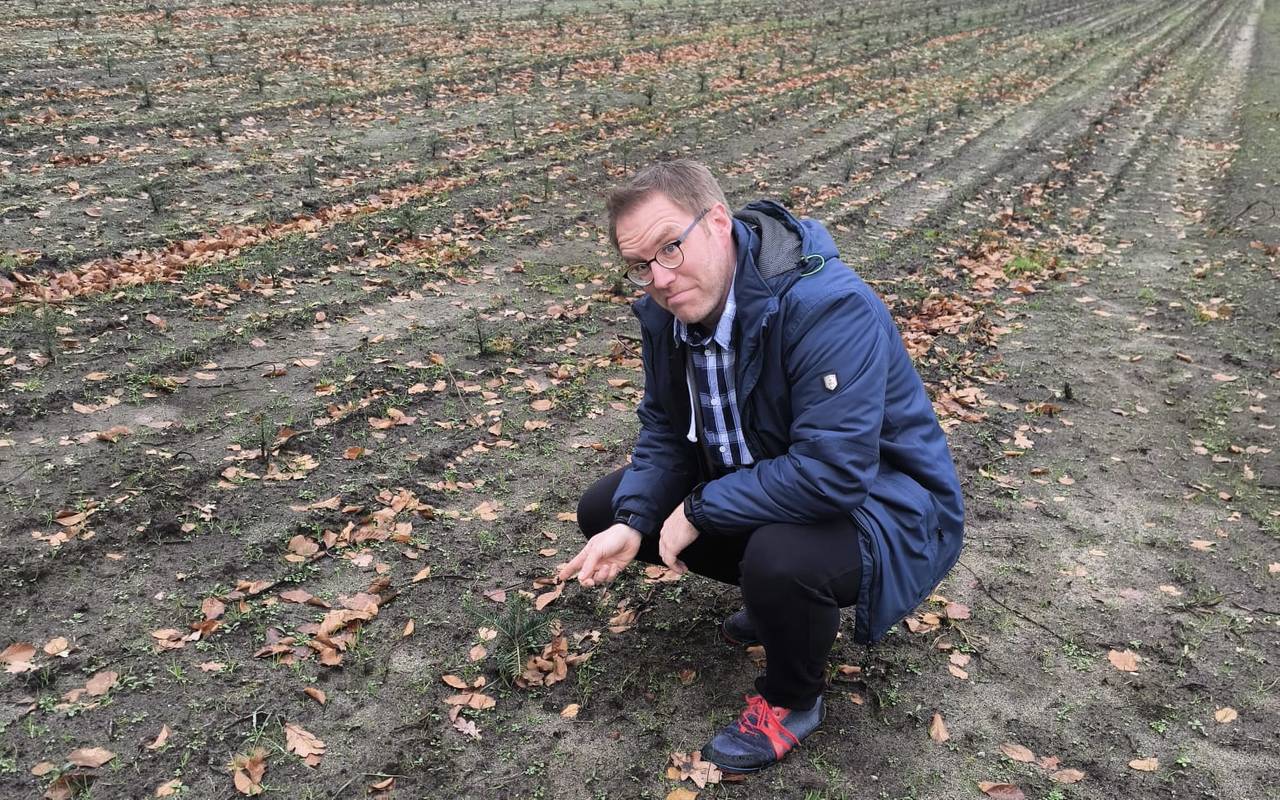 Auf dem ersten Foto seht Ihr Daniel mit Bäumen, die schon vier Jahre alt sind und kaum zu erkennen sind. Richtig groß sind sie dann erst nach 11 Jahren (Auf Bild 2 zu sehen mit Markus Schulze Beikel aus Marbeck, er baut die Bäume selbst an) .