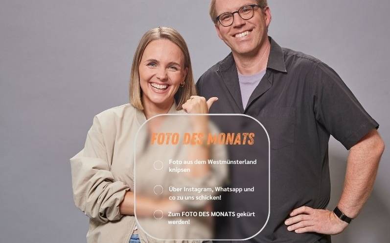 In diesem Jahr küren wir in jeden Monat das FOTO DES MONATS! Schickt uns Eure schönsten Fotos aus dem Westmünsterland und mit ein bisschen Glück küren Sina Kuipers und Daniel Krawinkel Euer Bild zum Foto des Monats!