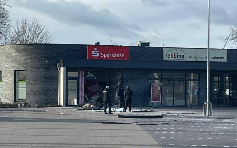 Neben der SB-Filiale der Sparkasse Westmünsterland ist auch eine Fahrschule und eine Bäckereifiliale in Mitleidenschaft betroffen. Die Täter sind mit einem dunklen Auto geflüchtet. Auf der L 608 in Richtung Gescher verliert sich die Spur, heißt es von er Polizei. Das ist schon die zweite Geldautomaten-Sprengung in dieser Woche im Westmünsterland, insgesamt in diesem Jahr die siebte. Zum Vergleich: Im gesamten letzten Jahr gab es fünf.