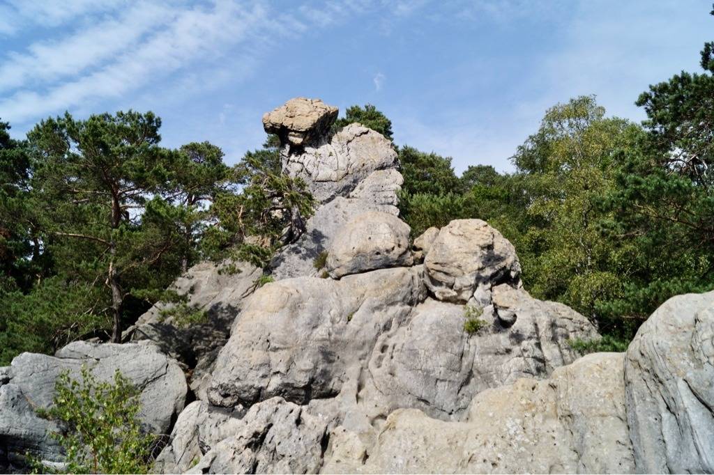 Das "hockende Weib" in Ibbenbüren–Dörenthe - Es ist der bekannteste Felsen im Teutoburger Wald. Vom Wanderparkplatz "Dörenther Klippen" sind es nur rund 500 Meter über den Herrmannsweg - das Naturdenkmal ist sehr gut zu erreichen. Wer den Felsen besuchen möchte, kann dies mit einer Wanderung durch den Teutoburger Wald verbinden. Hier sind verschiedene Wege für jedes Niveau ausgeschildert. An einigen Stellen kann auch geklettert werden. Wenige Meter weiter liegt direkt am Hermannsweg eine Almhütte. Der Almwirt Horst bietet seinen Gästen eine gemütliche Pause bei kalten Getränken, Eis oder Kaffee. Hinter der Hütte hat er eine Plattform erbaut. Von dort aus reicht die Aussicht bis nach Münster.