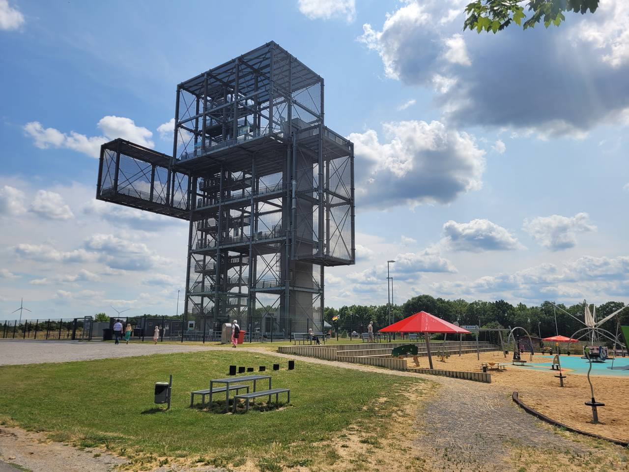 Der Indemann: Wo heute noch drei riesige Tagebaulöcher die Landschaft bestimmen, werden in einigen Jahrzehnten große Seen entstehen. Doch um im Rheinischen Revier etwas zu erleben, muss man nicht so lange warten. Das geht heute schon am Indemann. Im Grund ist "er" ein Aussichtsturm, aber auch das Wahrzeichen des "Indelandes". So heißt die Region rund um den Tagebau Inden (in der Gemeinde Inden, am Fluss Inde). Und ein Besuch am Indemann lohnt sich durchaus für einen Tagesausflug mit der Familie.