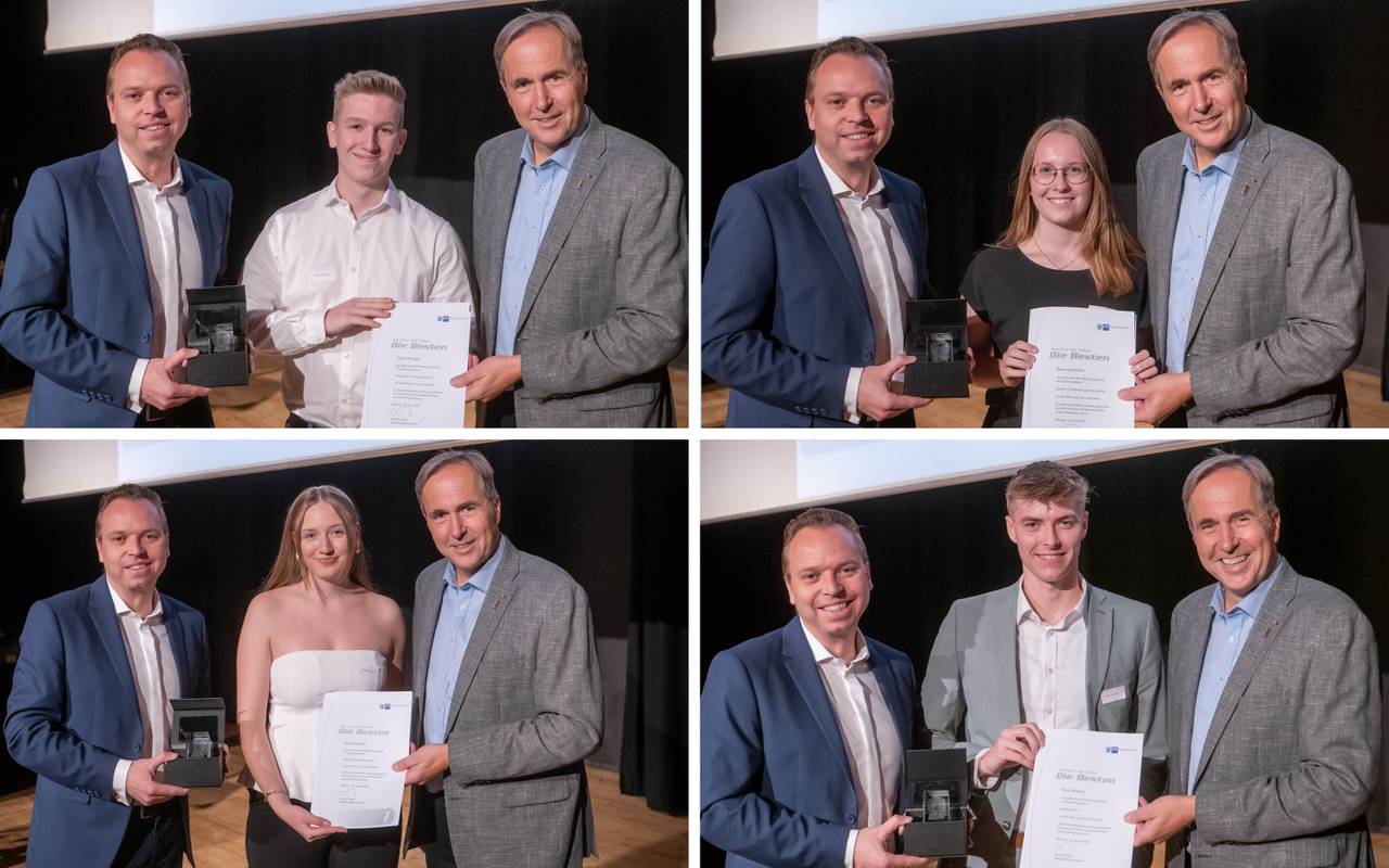 Ausgezeichnet wurden Bankkaufmann Finn Winking aus Ahaus und Ronja Hermeler aus Gescher, Kauffrau für Büromanagement. Aus Borken waren es Tobias Kringler, Elektroniker für Betriebstechnik, und Anna-Lina Kuhn, Kauffrau für Marketingskommunikation. Insgesamt hatten sich im vergangenen Winter und Sommer 440 junge Menschen aus dem Kreis Coesfeld der IHK-Prüfung gestellt.