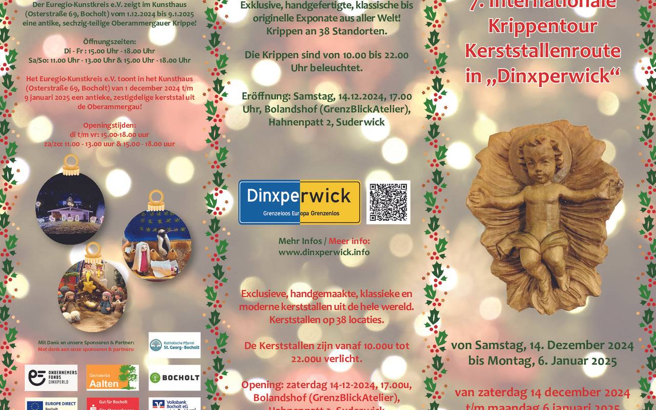 Am Samstag startet in Dinxperwick die 7. Internationale Krippentour. Hier können wir bis zum 6.Januar 2025, Krippen aus aller Welt bestaunen. Bei warmen weihnachtlichen Getränken und passendem Gebäck, können wir uns die Exponate aus aller Welt anschauen und uns in weihnachtlicher Stimmung versetzen. Weitere Infos findet ihr hier.
