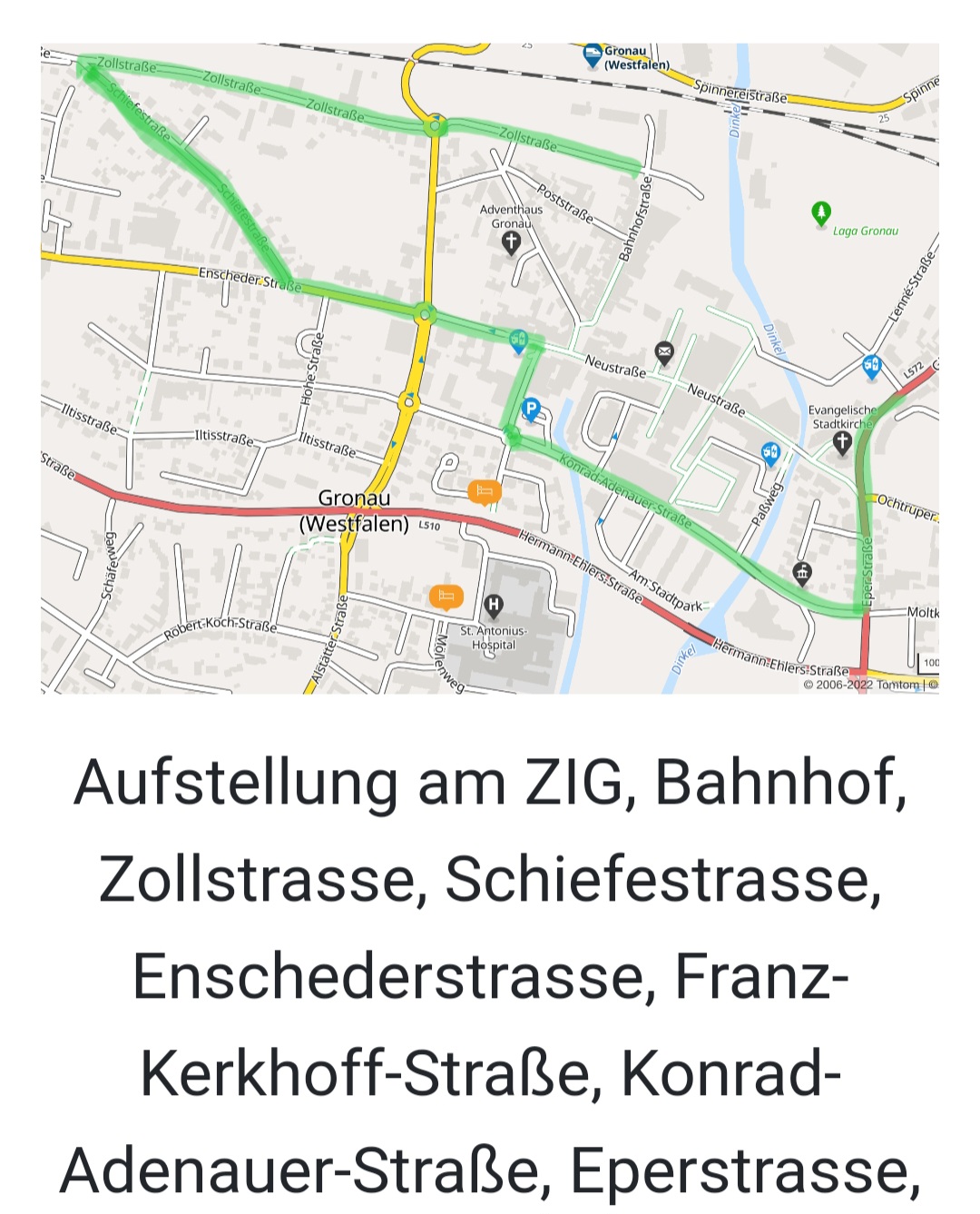 Gronau, Sonntag, 11.02.24, ab 13.11 Uhr auf der Zollstraße, zwischen Bahnhof, dem IZG-Gebäude und dem dahinterliegenden freien Platz.