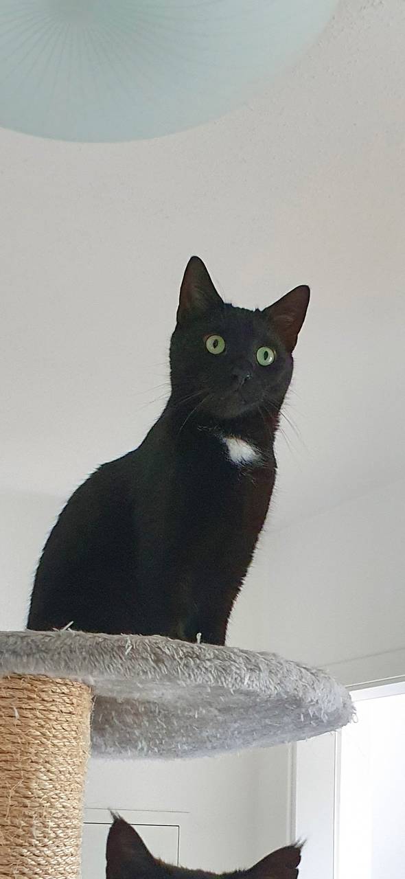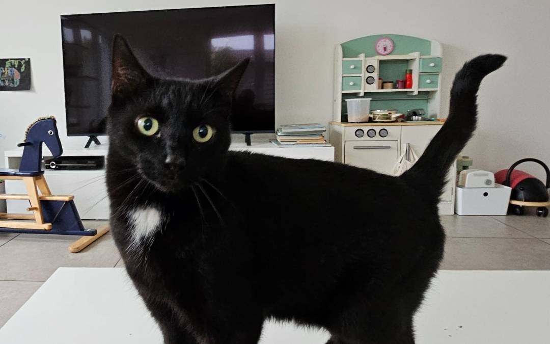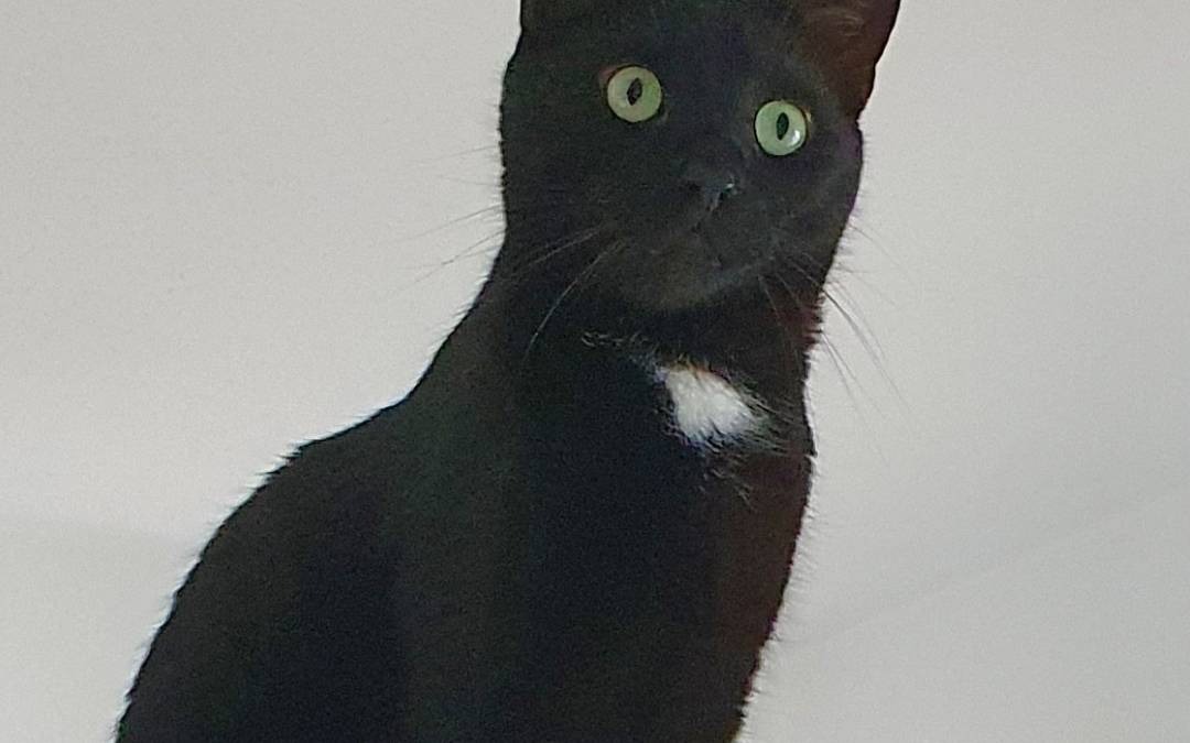 Findus ist ein Kater, 9 Jahre alt, schwarzes Fell mit weißem Fleck auf der Brust. Kastriert und gechippt (Tasso-Suchnummer S3031673)