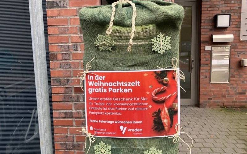 Ab dem 6. Dezember 2024 gibt es in der Vredener Innenstadt kostenloses Parken. Die Stadt Vreden und die Sparkasse Westmünsterland haben beschlossen, in der Vorweihnachtszeit auf Parkgebühren zu verzichten. Dies gilt auch für den Parkplatz neben der Sparkasse, der normalerweise bewirtschaftet wird.
