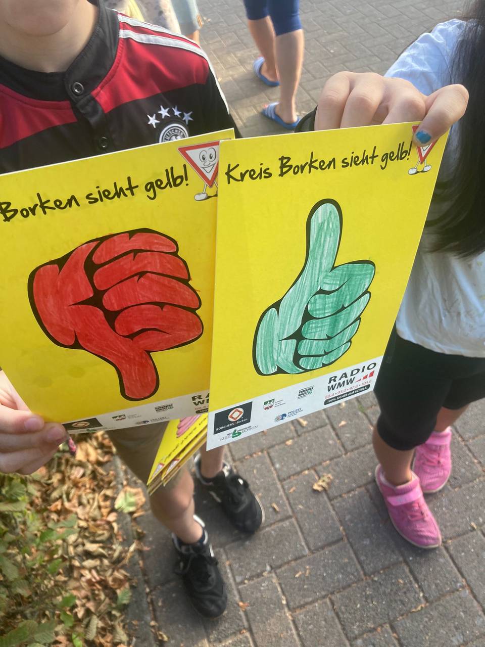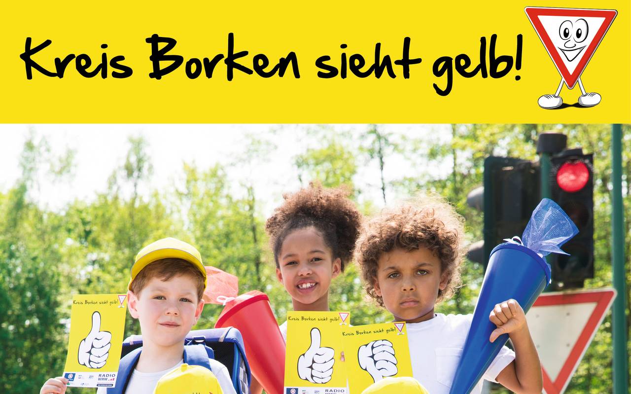 Wir wollen wohl alle, dass unsere Kinder sicher zur Schule kommen. Das gilt vor allem für unsere I-Dötzchen. Daher starten wir auch in diesem Jahr unsere Aktion "Kreis Borken sieht gelb!".