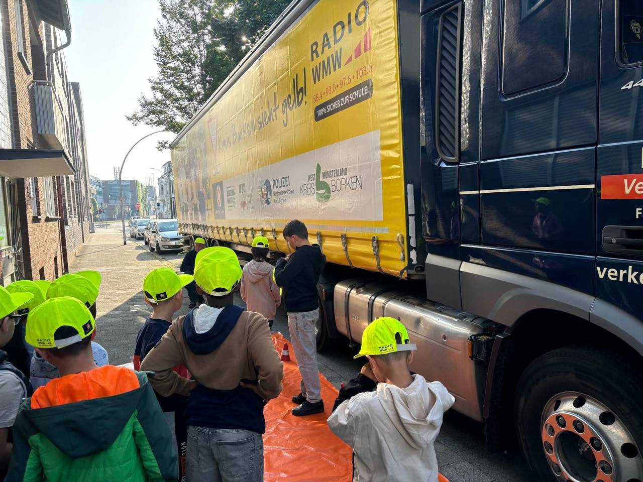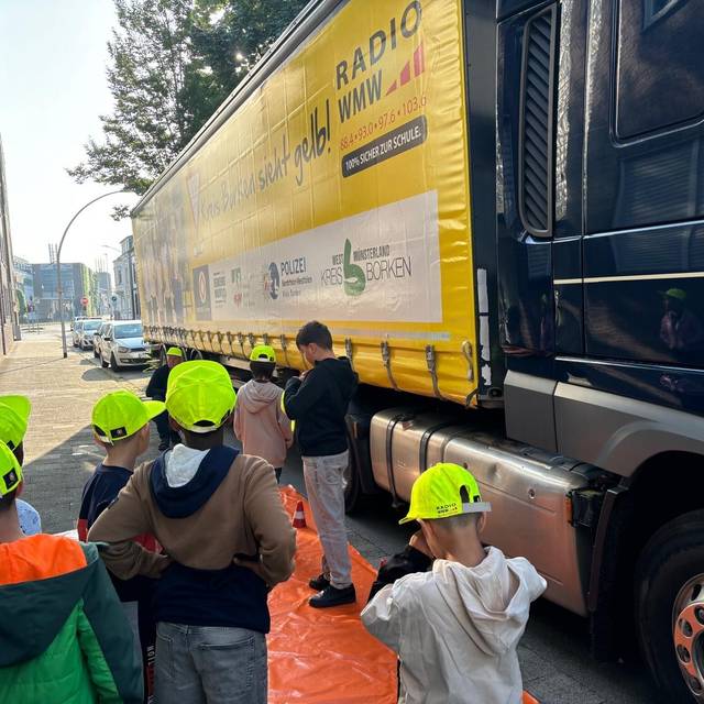 Unsere I-Dötzchen sind wieder ganz neu auf den Straßen unterwegs und gehen ganz schnell unter. Wir kontrollieren gemeinsam mit den Kids und der Polizei den Verkehr. Gestern gings los in Bocholt an der Josefschule. Da haben die Kids die Geschwindigkeit der Autofahrer vor Ihrer Schule kontrolliert. Und die Kinder konnten ausnahmsweise sogar mal in die Rolle des Fahrers schlüpfen. Neben Geschwindigkeitskontrollen haben die Kids gestern nämlich auch über den berühmten Totenwinkel gesprochen. Der kann schnell gefährlich werden. Partner der Aktion ist ja auch die Firma Borchers und die haben den großen "Kreis Borken sieht gelb" LKW mitgebracht. Den durften die 4-Klässler natürlich nicht durch die Stadt fahren. Stattdessen haben sie mal die Perspektive gewechselt hat uns Thea aus Biemenhorst erzählt.