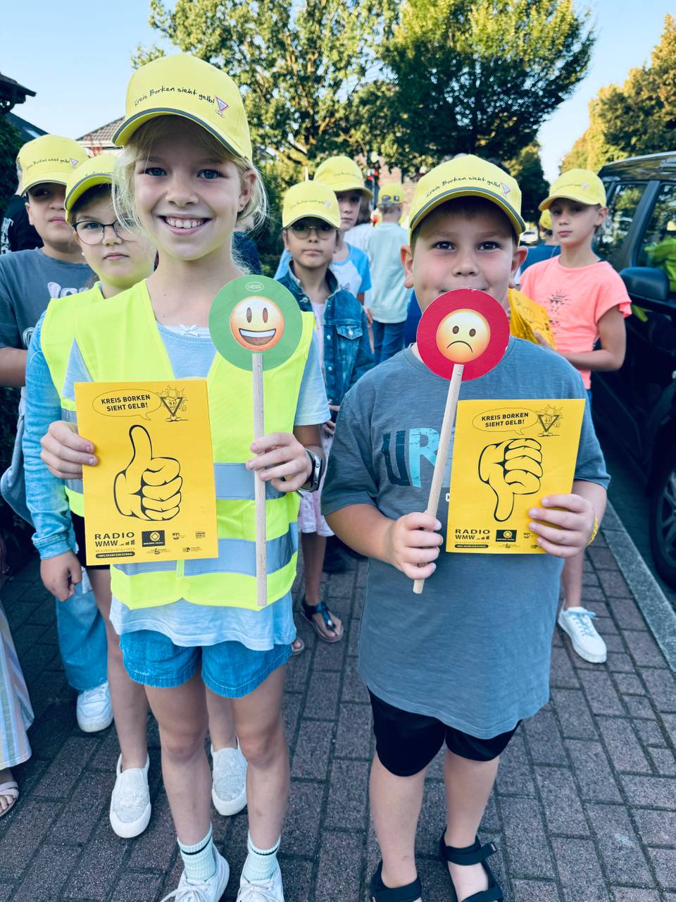 Hier bei uns im Kreis Borken geht es für viele Kinder nach den Sommerferien zum ersten Mal zur Schule. Da wollen wir von RADIO WMW dafür sorgen, dass die Kleinen sicher zur Schule und zurück kommen. Im Rahmen unserer Aktion "Kreis Borken sieht gelb!" verteilen wir leuchtend gelbe Käppis an alle I-Dötzchen und kontrollieren gemeinsam mit den Schülern die Autofahrer an unseren Schulen.