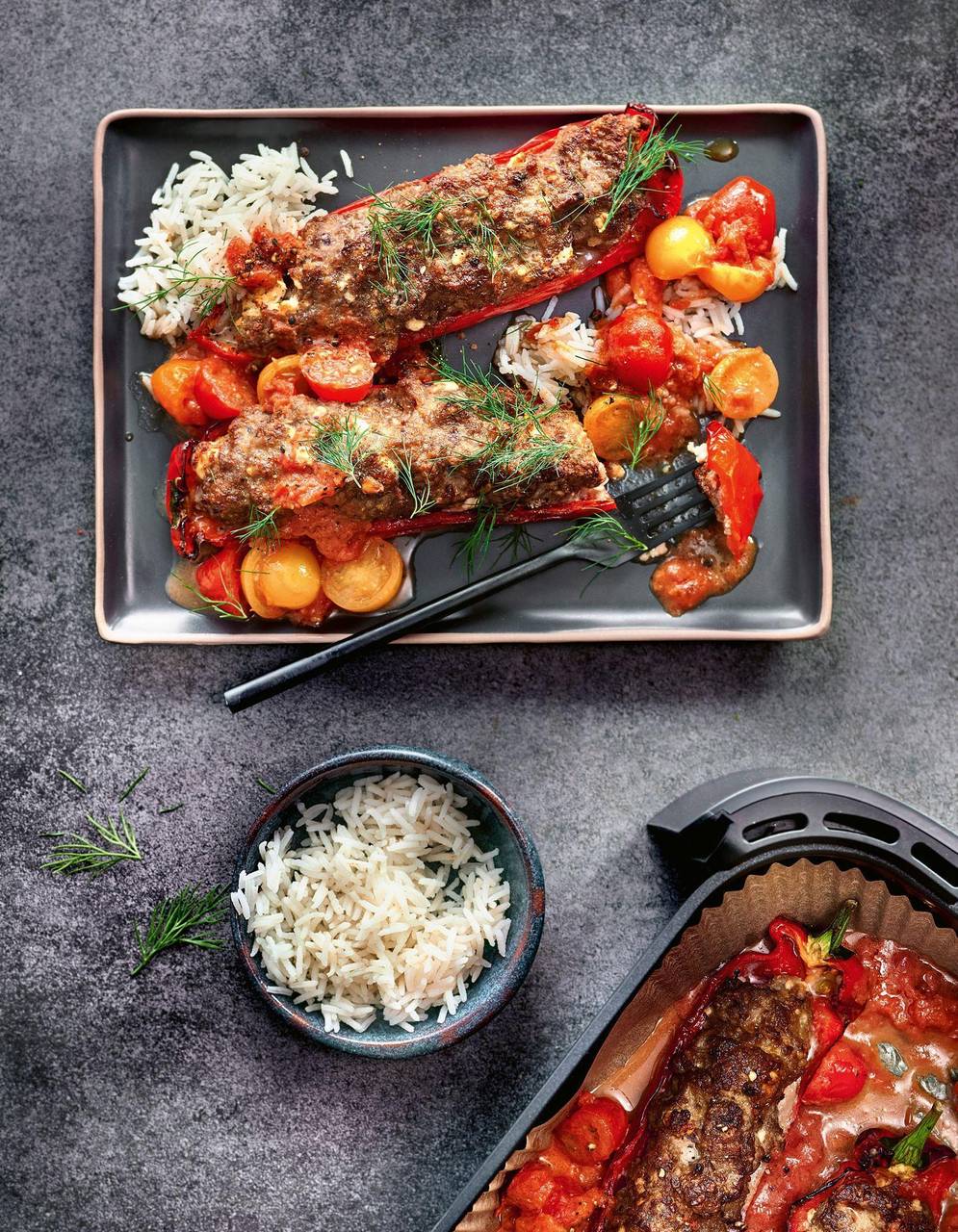 Auch bei ihm läuft die Heißluftfritteuse im Grunde jeden Abend. Eines seiner Lieblingsrezepte sind gefüllte Paprika – vorbei die langwierige Zubereitung nach Omas Rezept. «Kompliziert war gestern», sagt der Koch. In seinem Rezept wird rote Spitzpaprika mit einer Mischung aus Zwiebeln, Knoblauch, Feta, Hackfleisch, Chiliflocken, Ei, Panko und etwas Salz und Pfeffer gefüllt. Ganze 15 Minuten ist das Gericht bei 190 Grad im Gerät. Erst fünf Minuten vor Ende kommt die Soße aus Tomaten und Sahne dazu.