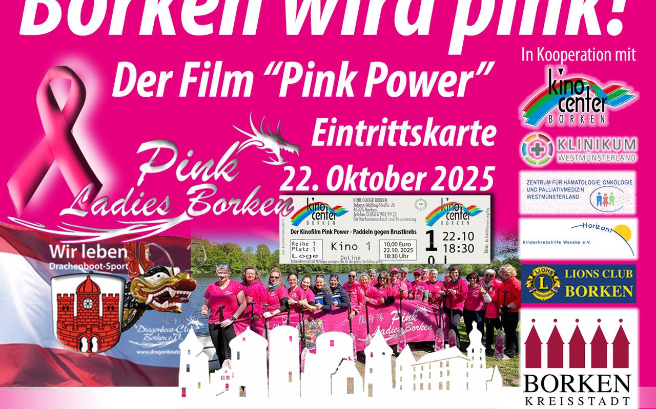 Am Mittwoch (22.Oktober,18.30 Uhr) haben die Frauen einen Kinoabend im Kinocenter Borken organisiert. Dort wird der "Pink Power" Kinofilm über eine ähnliches Frauenteam gezeigt und im Anschluss gibt es eine Talkrunde mit Ärzten und Betroffenen.