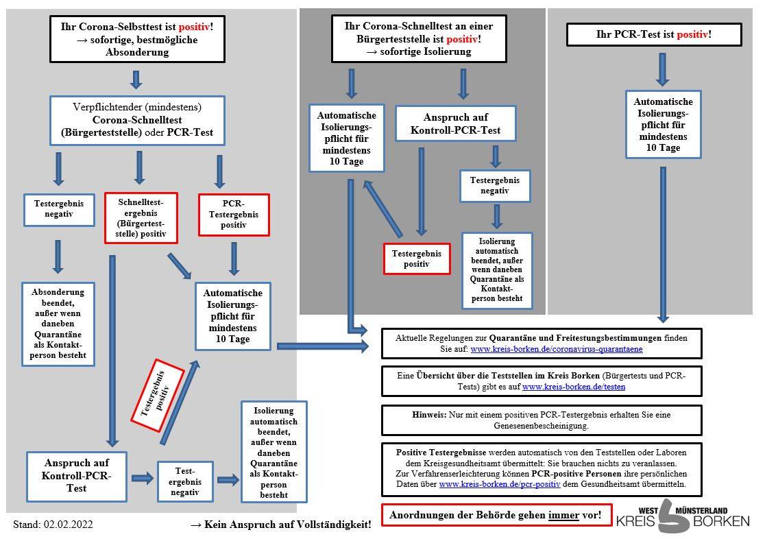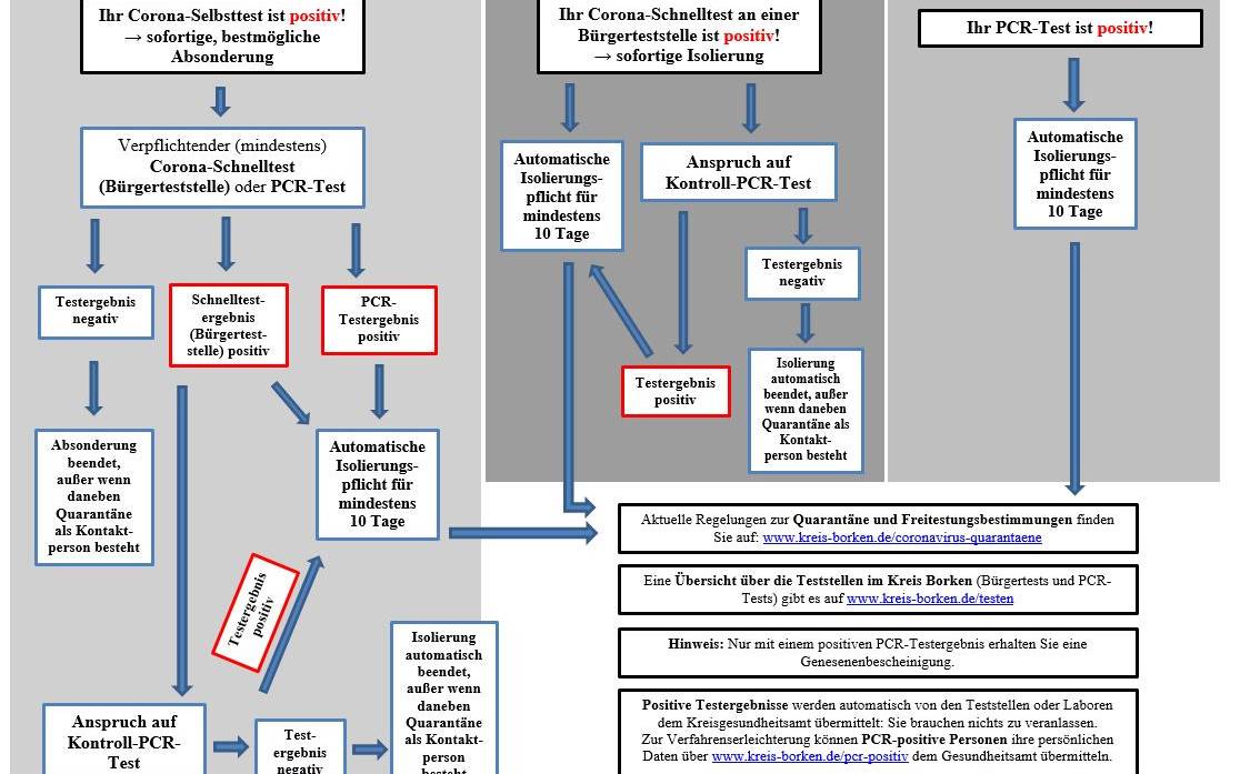 Was mache ich, wenn mein Corona-Test positiv ist? Damit möglichst viele von uns schnell eine Antwort finden, hat der Kreis Borken jetzt ein Schaubild erstellt.