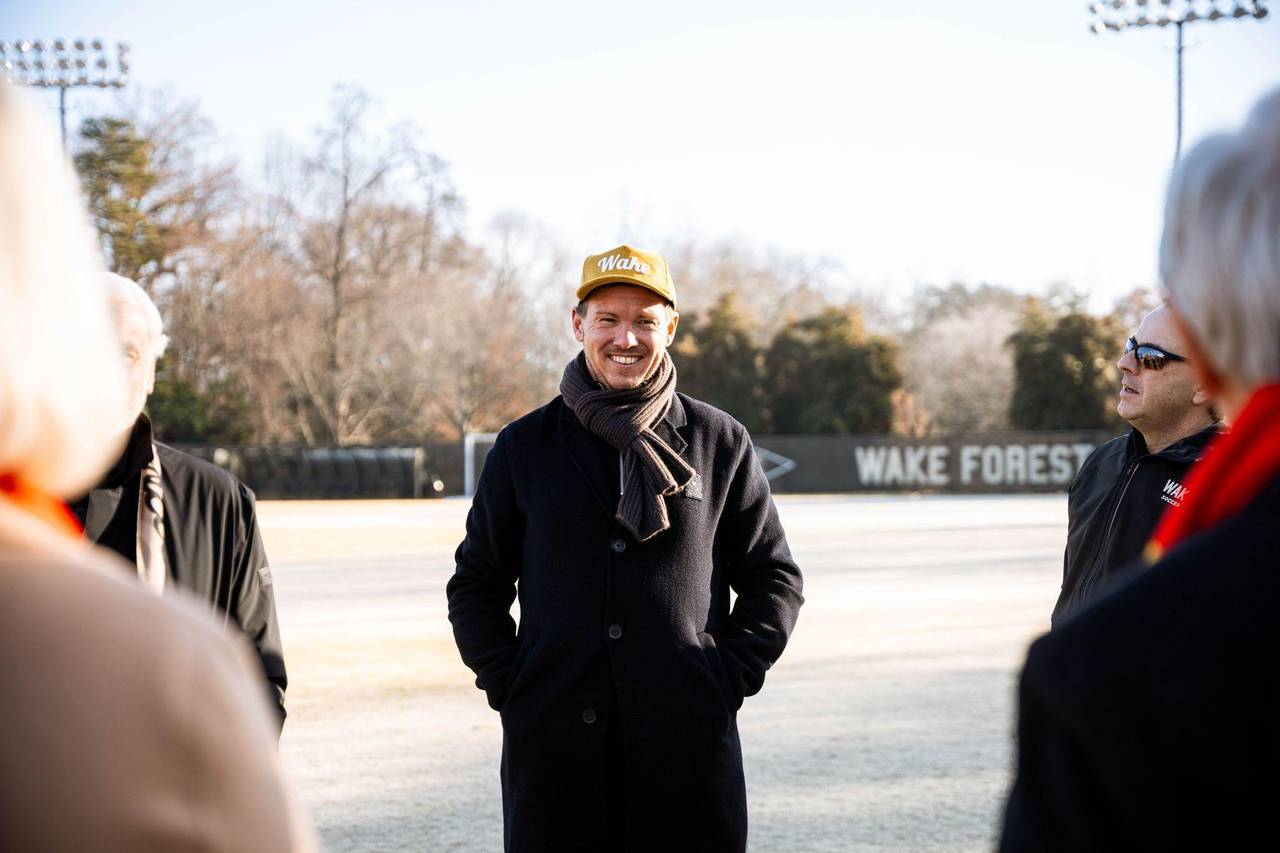 Bundestrainer Julian Nagelsmann auf dem Sportgelände der Universität.© -/Wake Forest Athletics/DFB/dpa