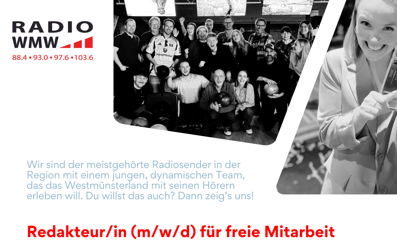 Du hast ein abgeschlossenes Volontariat, Erfahrung im Umgang mit digitalen Plattformen, Social Media und in der Produktion von Hörfunkbeiträgen? Du bist flexibel, kreativ und lokal im Münsterland verankert, dann bewirb dich als freie/r Redakteur/in.
