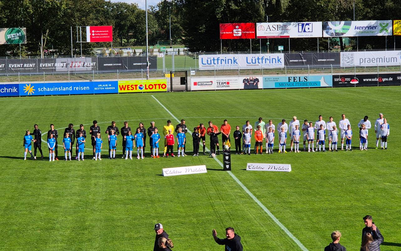 Vor 1.834 Zuschauern unterlagen die Schwatten der zweiten Mannschaft von Borussia Mönchengladbach mit 2:4 (2:2). Mann des Spiels war der dreifache Torschütze Grant-Leon Ranos, der dem Profikader der Gäste angehört.