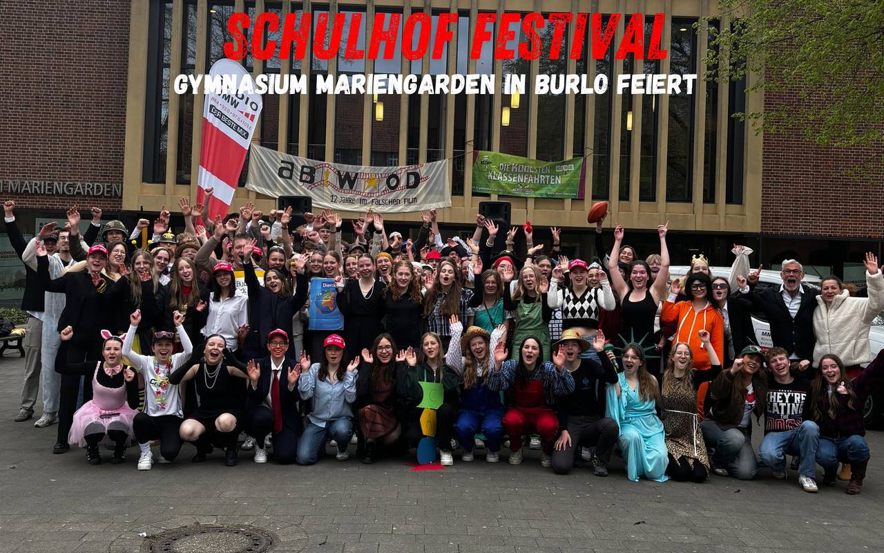 Es ist die letzte Schulwoche für die Abiturienten und das musste gefeiert werden mit dem kürzesten aber kleinsten Festival auf dem Schulhof des Gymnasium Mariengarden. Alle Schüler feierten zu der Musik von DJ Fabiasco und sind von Links nach Rechts gesprungen und sangen lautstark mit