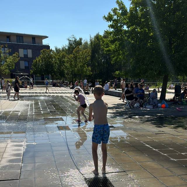 Sommer, Sonne, Wasserspaß. Wenn die Sonne rauskommt und sich die Stadt aufheizt sind die Wasserspiele in Gronau eine lockere Abkühlung für zwischendurch.
