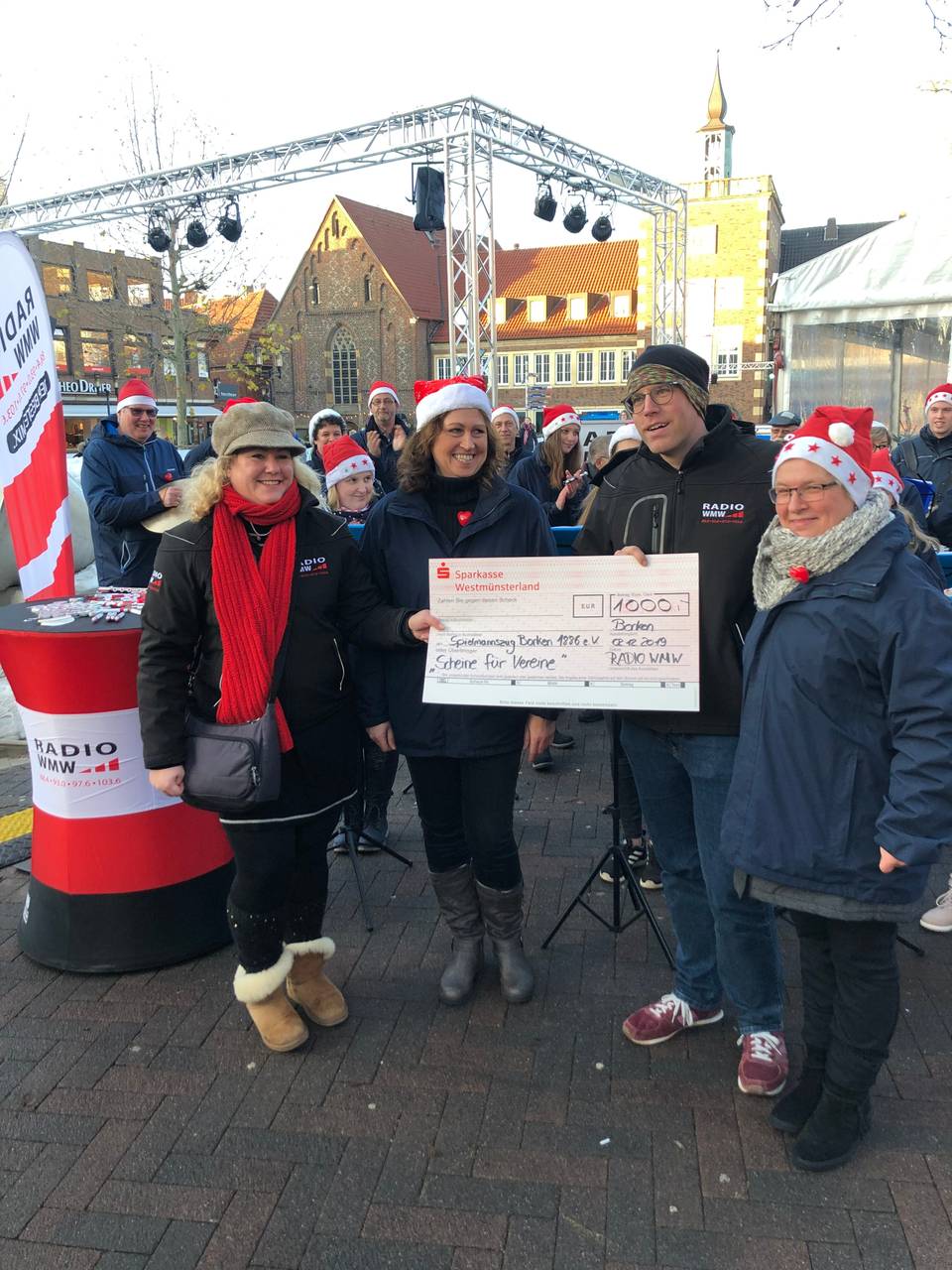 Wir von RADIO WMW sagen Euch mit einem kleinen Weihnachtsgeschenk "Danke" und belohnen Euch dafür, dass Ihr Euch während des ganzen Jahres für Euren Verein einsetzt. Die ersten 1000 Euro hat sich der Spielmannszug Borken 1886 e.V. gesichert. Nachdem sich Andrea rechtzeitig mit dem richtigen Vereinscode bei uns gemeldet hatte und somit schon 500 Euro für den Verein abgeräumt hat, ging es danach um eine ganz bestimmte Wette.