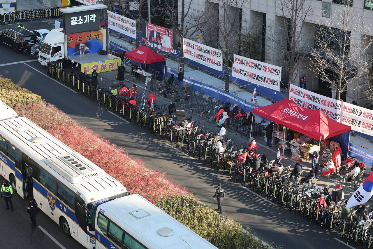 Unterstützer Yoons demonstrierten in der Nähe des Gerichts.
