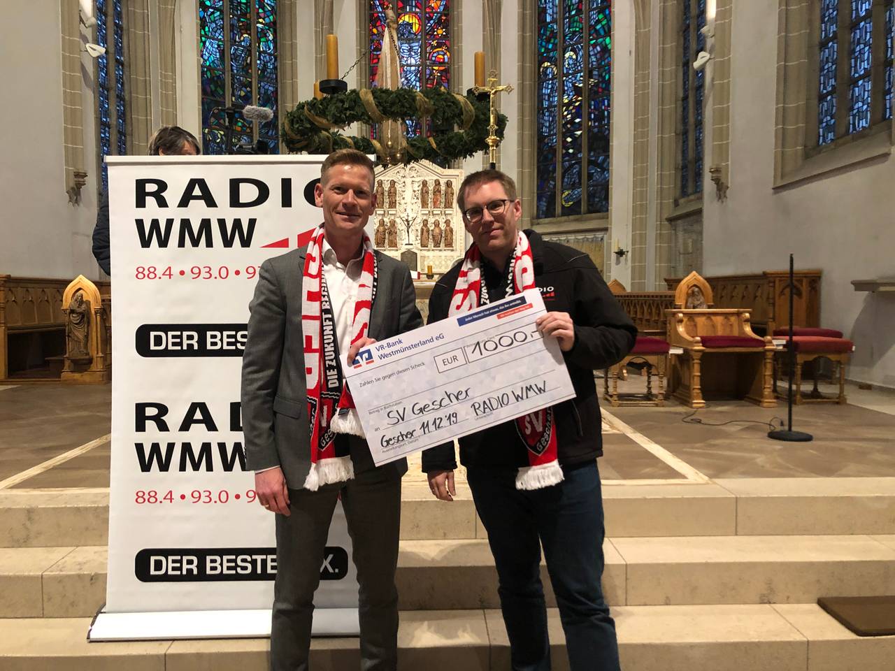 Wir von RADIO WMW sagen Euch mit einem kleinen Weihnachtsgeschenk "Danke" und belohnen Euch dafür, dass Ihr Euch während des ganzen Jahres für Euren Verein einsetzt. In dieser Runde hat sich der SV Gescher 1000 Euro gesichert! Nachdem sich Claudia rechtzeitig mit dem richtigen Vereinscode bei uns gemeldet und somit schon 500 Euro für den Verein abgeräumt hatte, ging es danach um eine ganz bestimmte Wette.