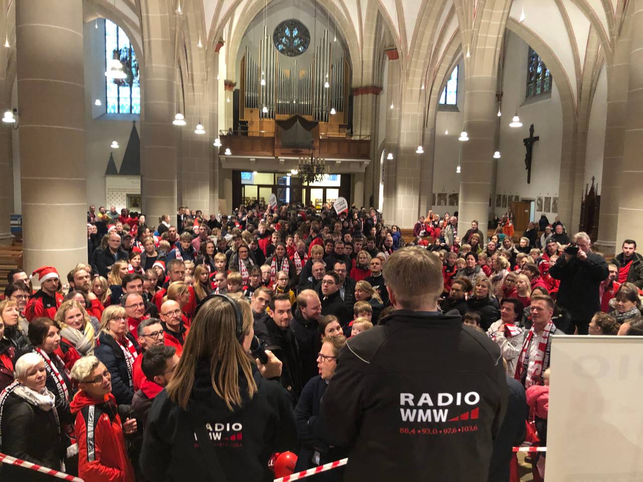 Eine Glocke aus über 500 Menschen - das hat der SV Gescher in der schönen Pankratiuskirche auf die Beine gestellt. Damit hat die Wette mehr als erfüllt und sich 1000 Euro für den Verein gesichert!