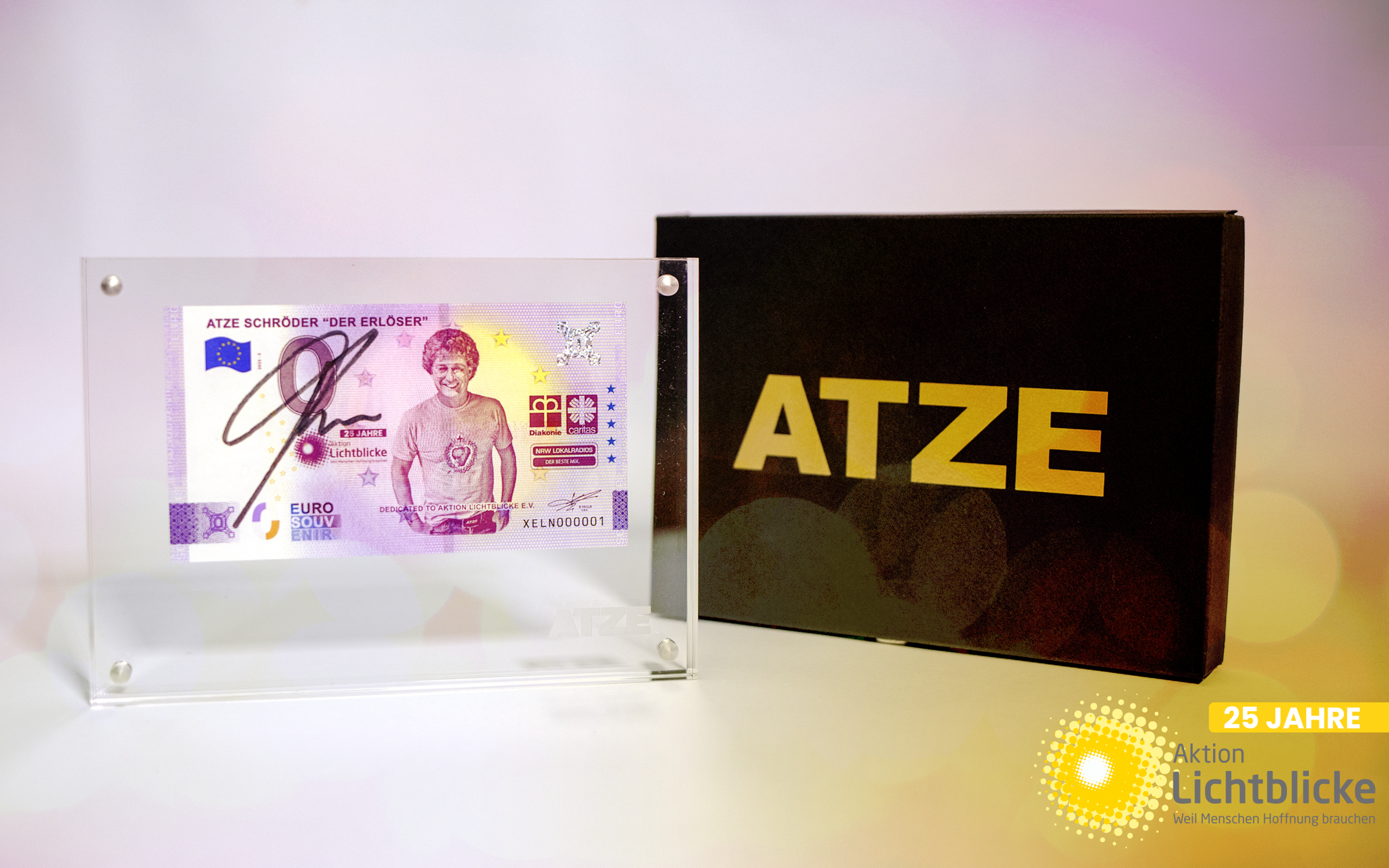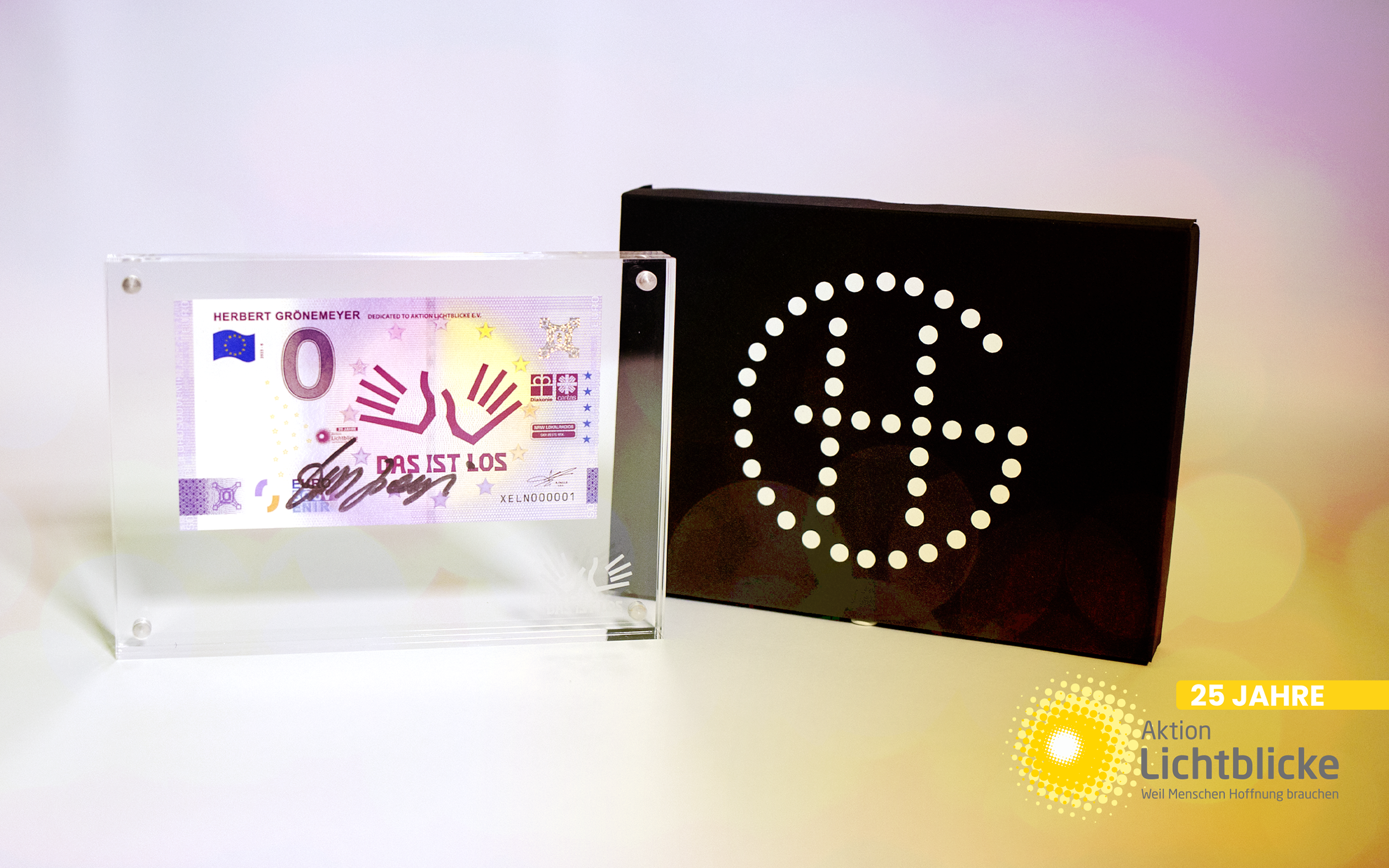 Exklusiv, hochwertig und streng limitiert – das sind die 0-Euro-Scheine – designt von Stars für die Unterstützer der Aktion Lichtblicke.