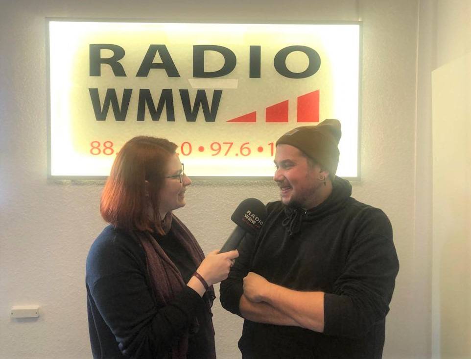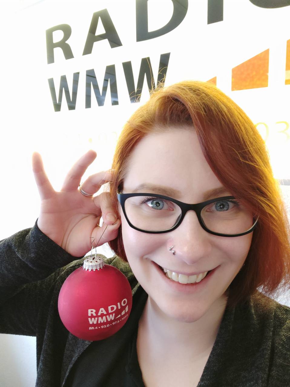 Rote Haare - schwarzes RADIO WMW Mikrofon - so bin ich für Euch im Kreis Borken unterwegs!